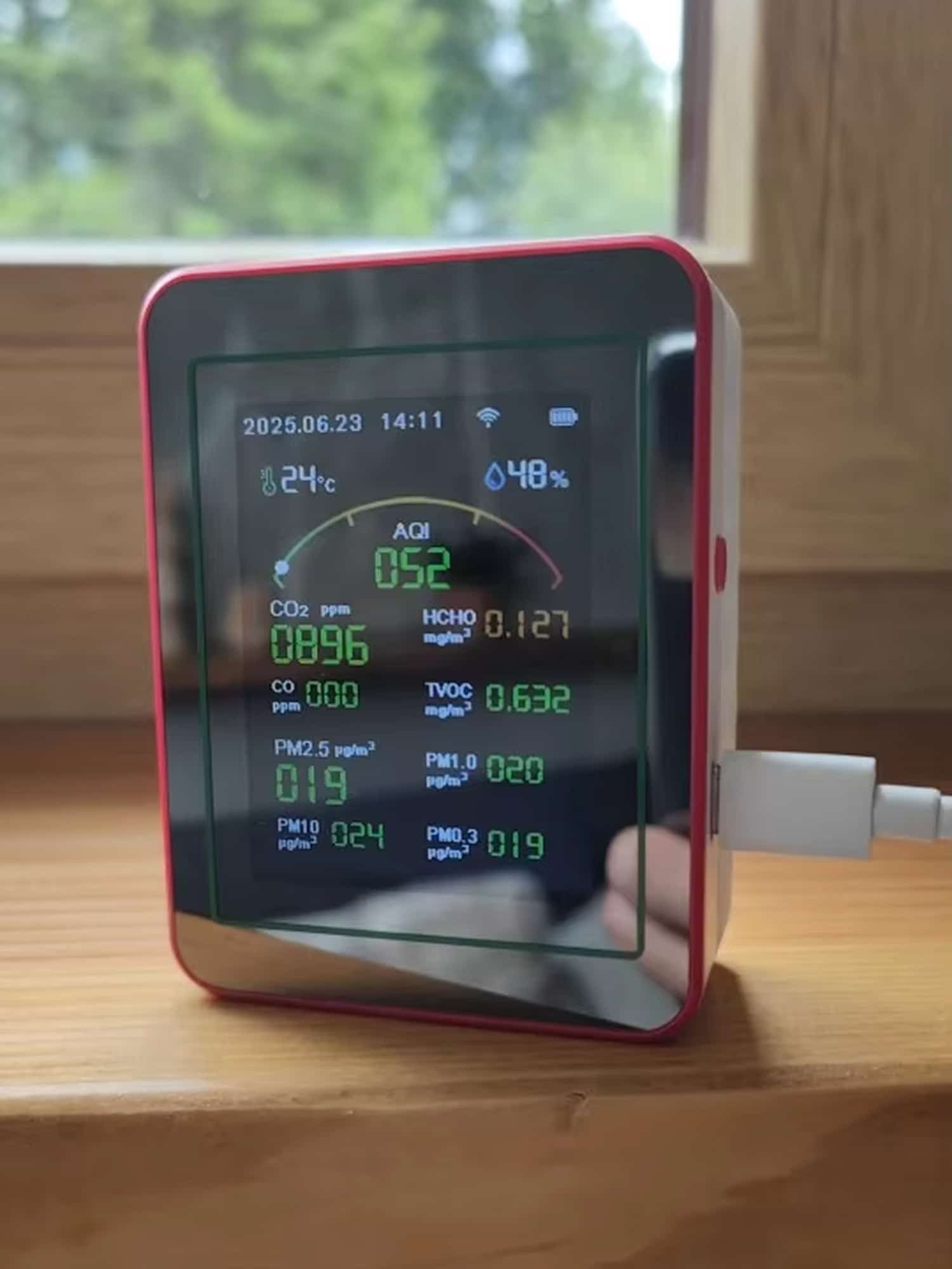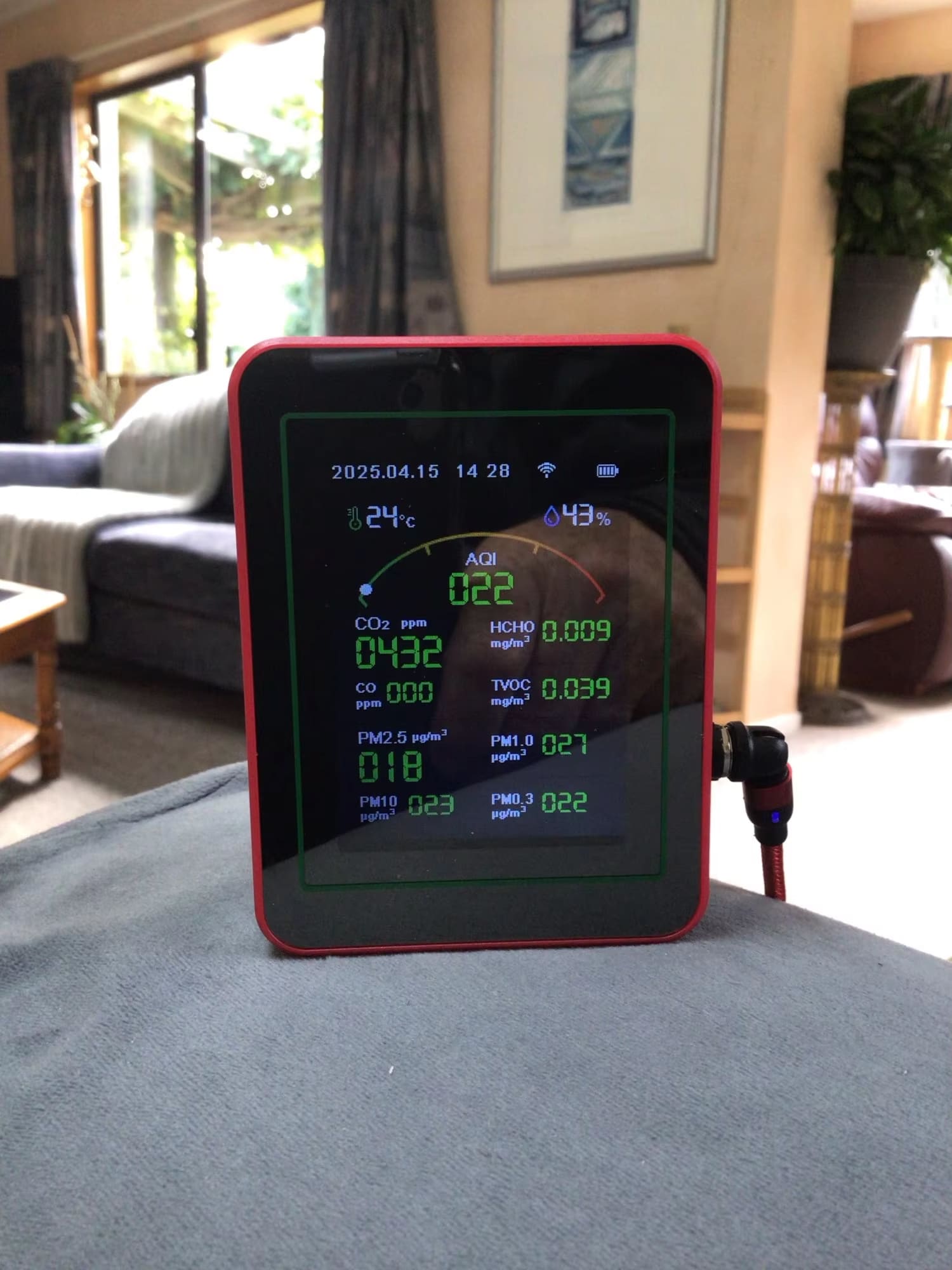 The 2000mAh battery provides 5-7 hours operation depending on screen usage. You can use AirLyzal plugged in via Type-C for continuous monitoring, or charge periodically for portable use throughout your home as needed.