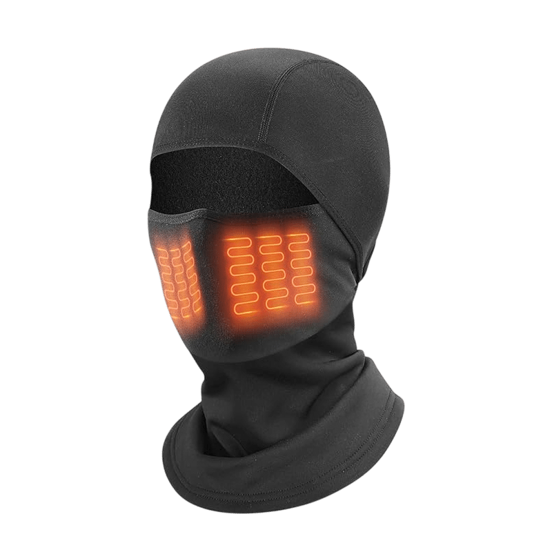 Using a 5000mAh power source, the mask provides approximately 4.5 hours of warmth on low setting, with shorter durations on medium and high settings depending on temperature selection and environmental conditions.