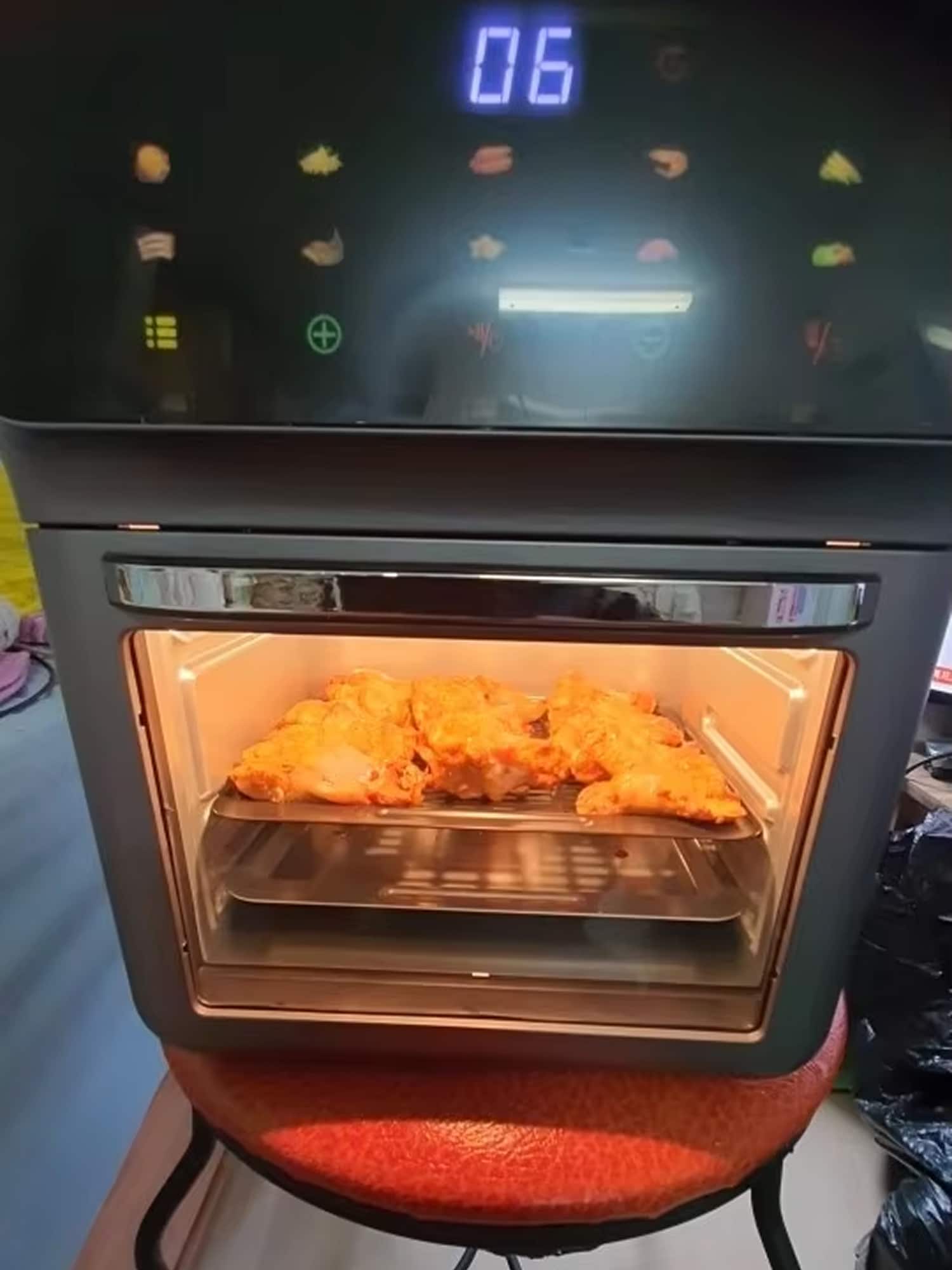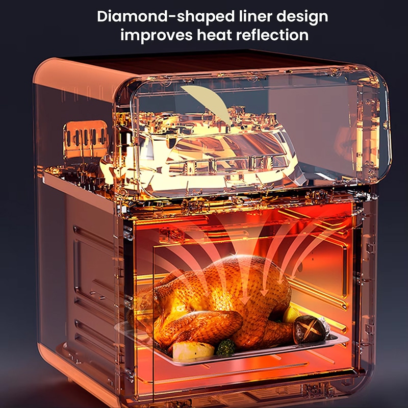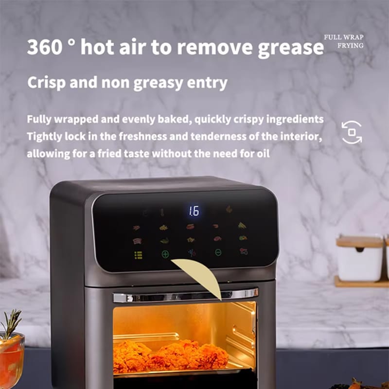 The 10L capacity easily accommodates a whole chicken, multiple portions for 4-5 people, or various food items simultaneously.