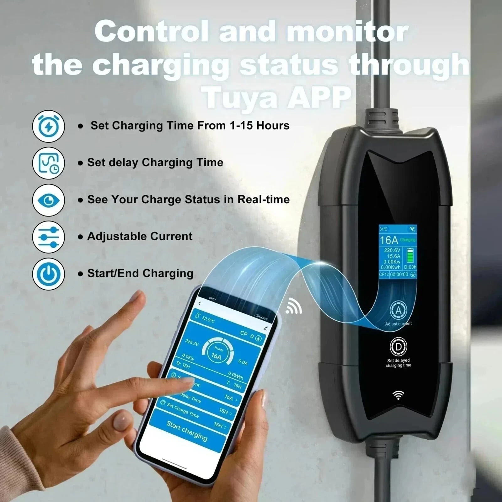 You can control your ElecaAmpi charger easily by downloading the Tuya Smart app on your iOS or Android device. The app allows you to monitor charging, set schedules, and view your charging history from anywhere.