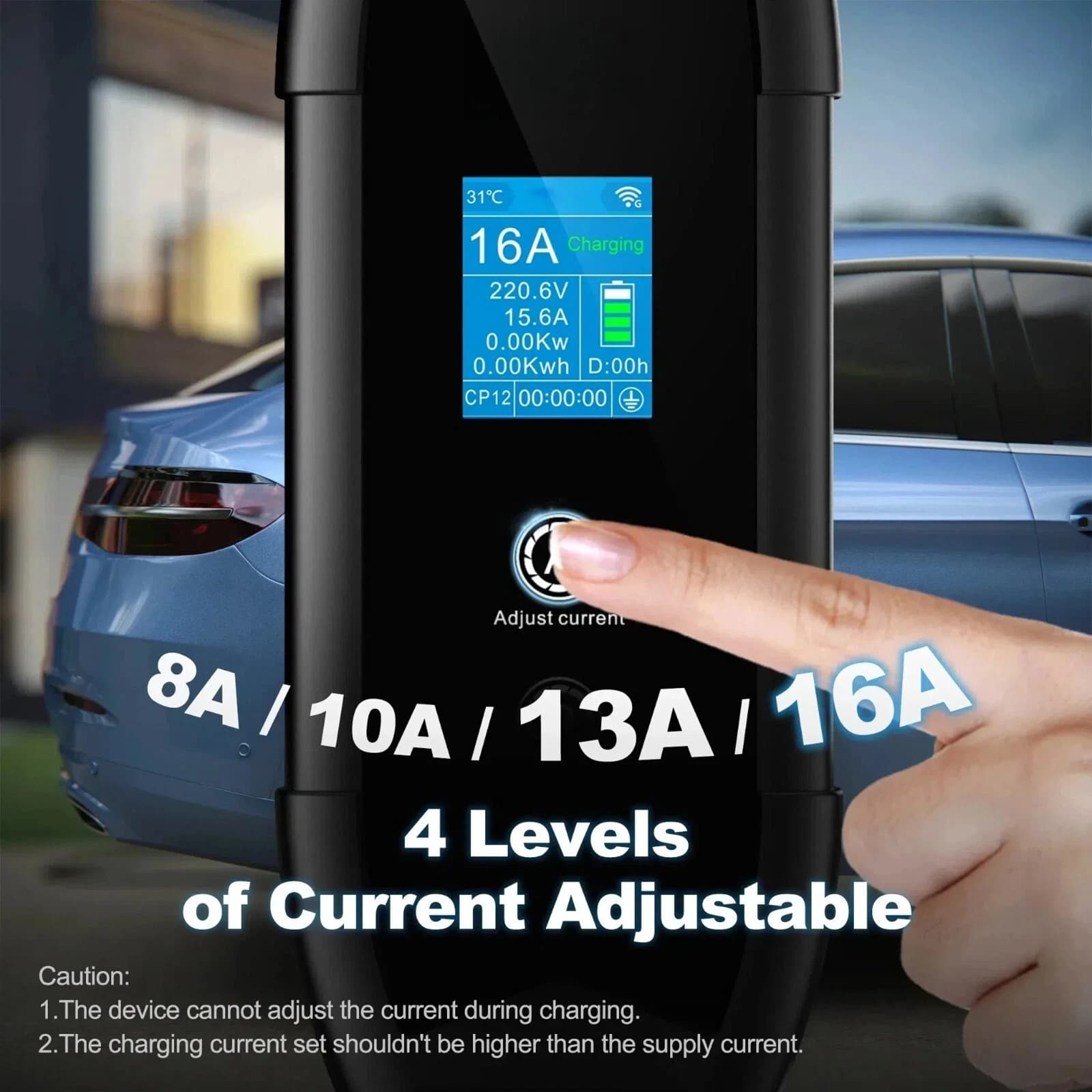 Absolutely. The ElecaAmpi charger features four adjustable current settings (8A, 10A, 13A, 16A), allowing you to match the charging rate to your specific electrical circuit's capacity for safe and optimised charging.
