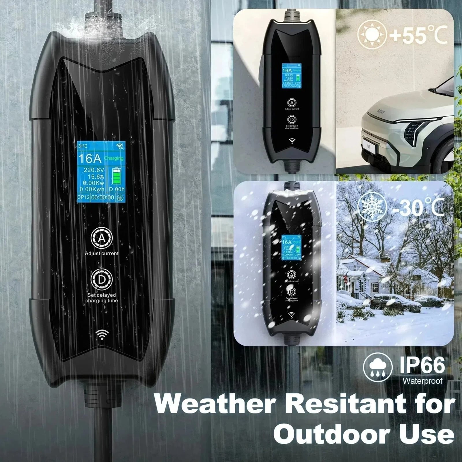 The IP65 rating means your ElecaAmpi charger is fully protected against dust ingress and water jets from any direction. This allows for safe and reliable outdoor use, even in typical British rainy conditions.