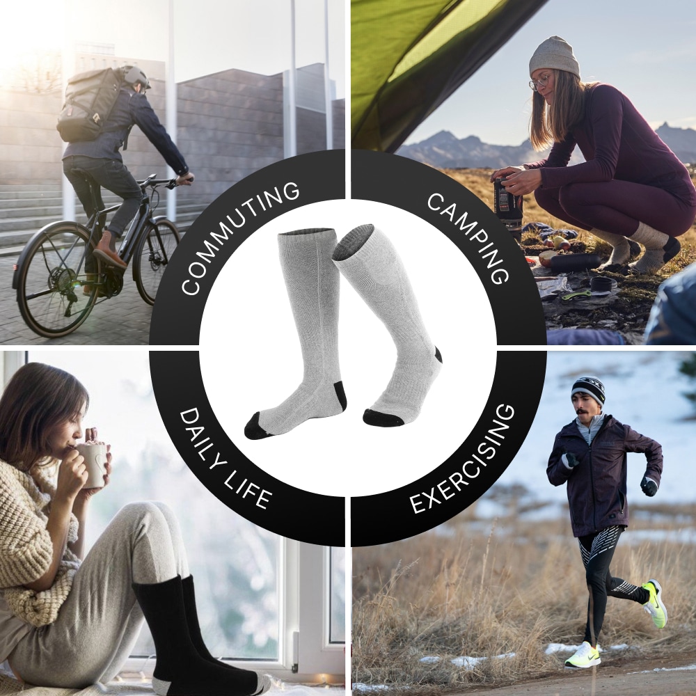 EmberSoli Heated Socks are perfect for winter sports, hiking, fishing, outdoor work, and daily activities in cold weather. Their versatile design provides reliable warmth for various outdoor and indoor scenarios.