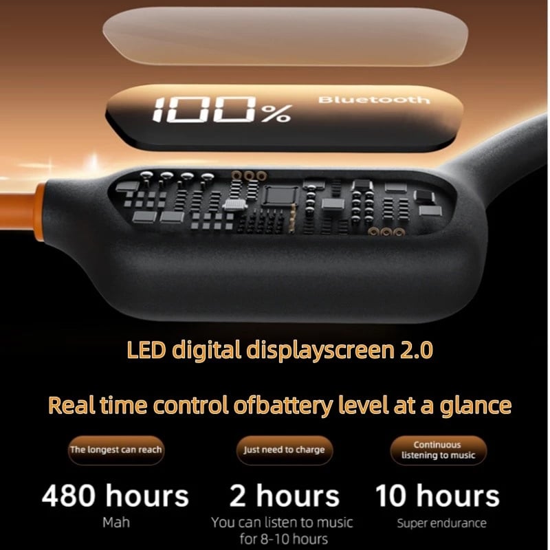 Innovative LED digital display 2.0 shows battery levels at a glance. Monitor power consumption in real-time with the FinBeati Swimming Headphones, ensuring you’re never caught without music mid-workout.