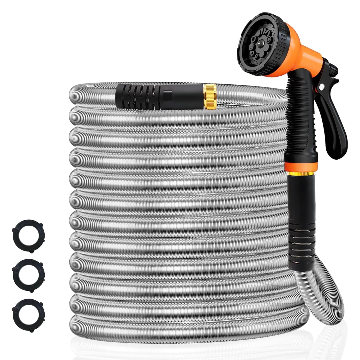 FlicAqua's stainless steel construction is naturally resistant to chewing and gnawing from pets or wildlife, unlike traditional rubber hoses that animals can easily damage through biting.