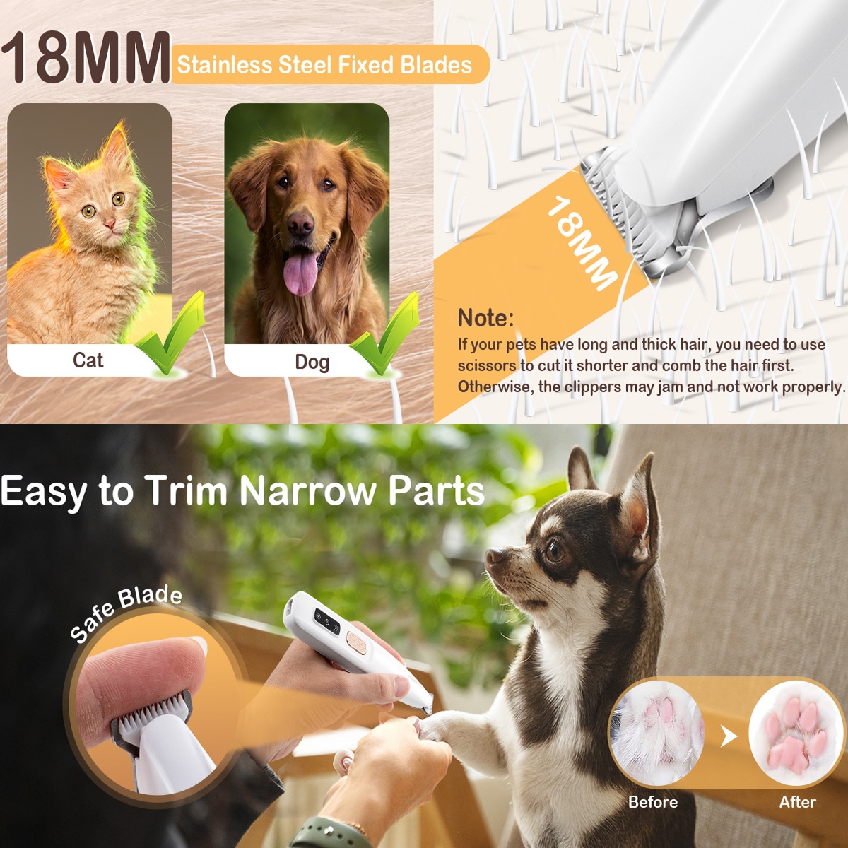 Absolutely. The 0.7-inch narrow blade is specifically designed for small breeds and intricate areas, ensuring a safe, nick-free trim for even the tiniest paws.