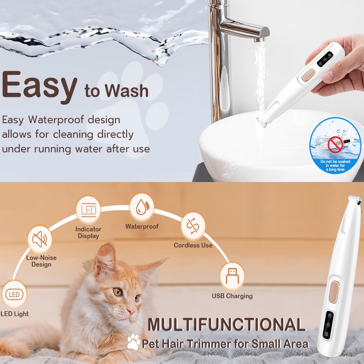 Yes, the quiet motor and narrow blade are perfect for cats. It handles delicate areas around their paws and ears with the same gentle precision.