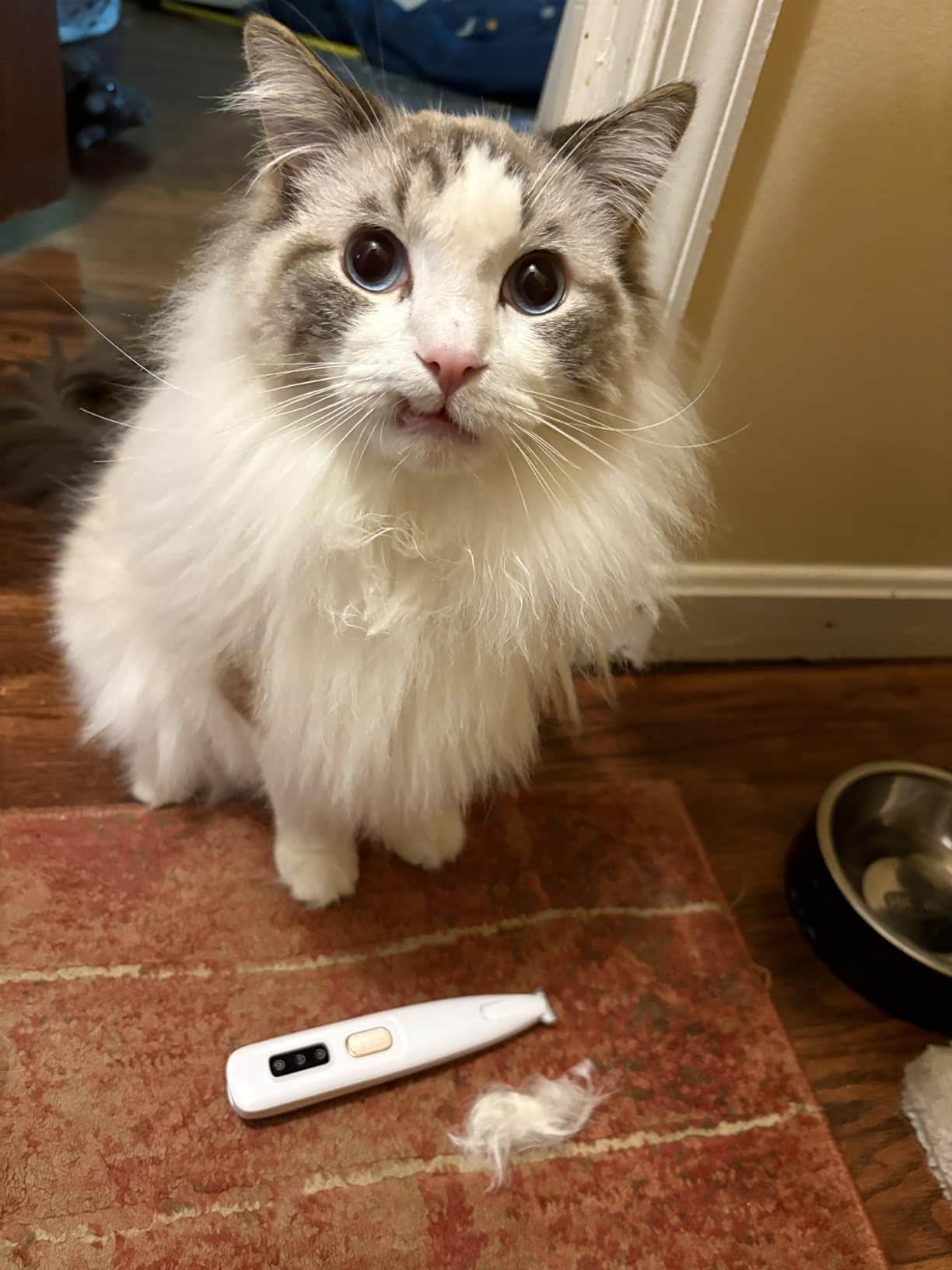For best results, dampen thick fur or pre-trim with scissors. This helps the blades glide smoothly through dense coats without pushing the hair aside.