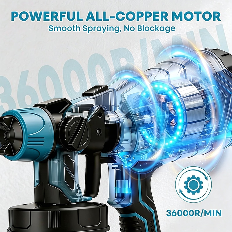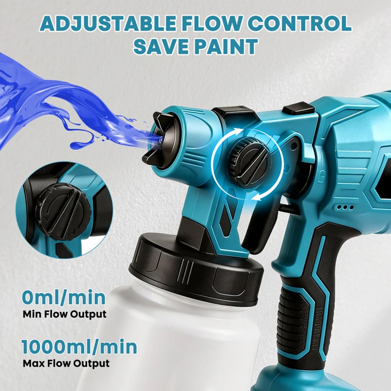 The sprayer features a large 1200ml capacity container. This generous size means you can paint for longer periods without having to stop frequently for messy refills.