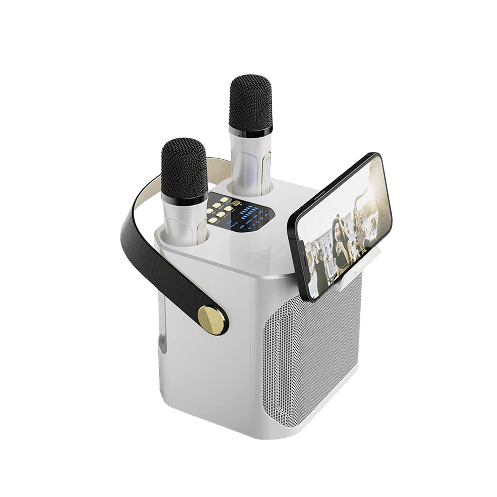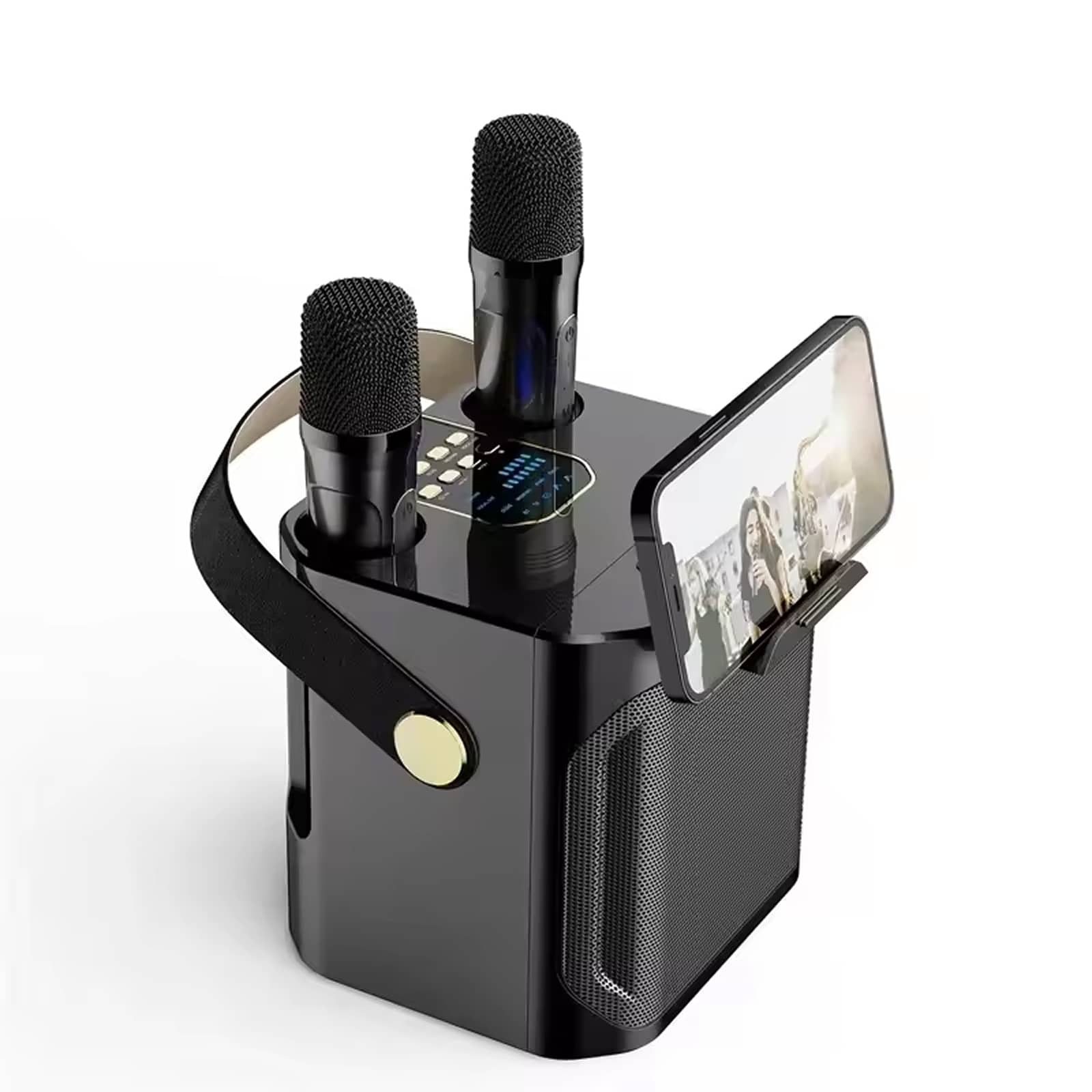 Premium leather handle design ensures comfortable portability whilst the compact dimensions fit perfectly in any space. Take your entertainment anywhere, from garden parties to camping trips with the JoyeVoice Mini Karaoke Machine.