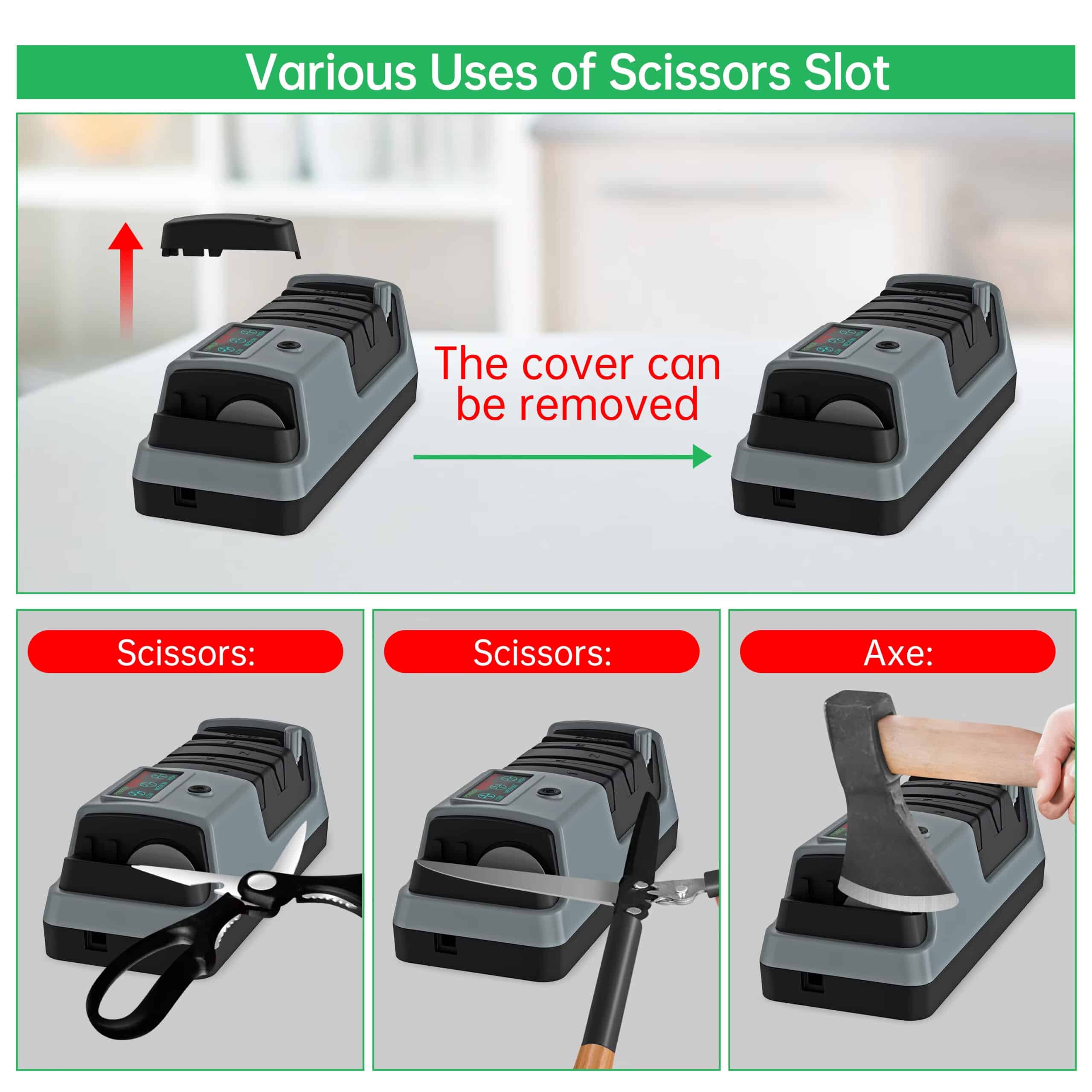 Absolutely. The dedicated slot handles garden scissors and axes effectively. Ensure tools are clean before sharpening. The robust motor and diamond wheels tackle tougher materials beyond standard kitchen knives.
