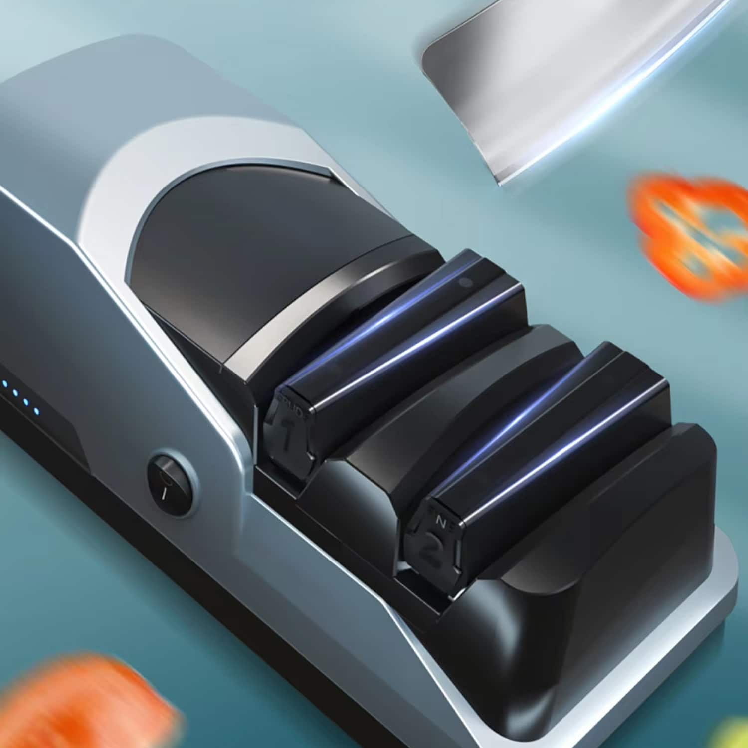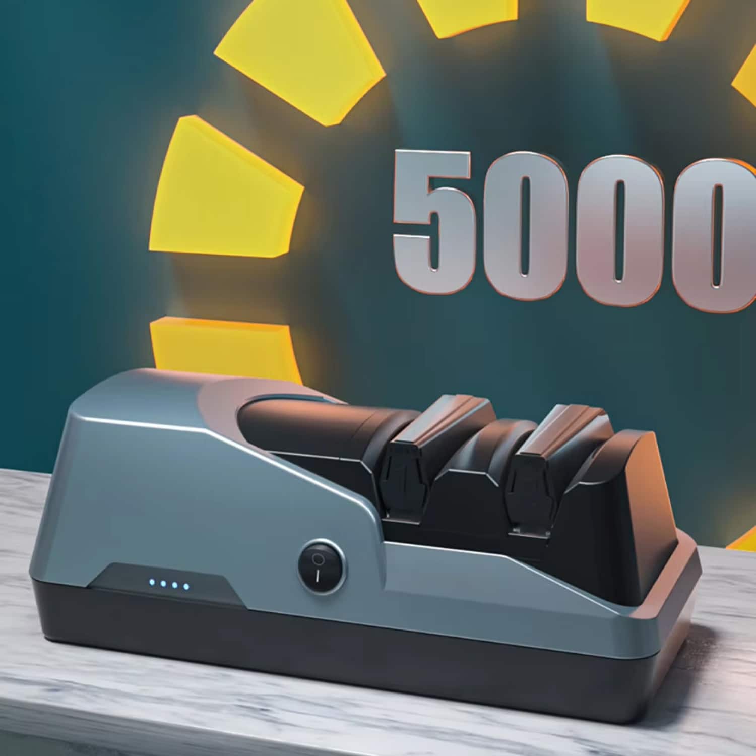 The rechargeable battery provides approximately 45-60 minutes of continuous operation, sufficient for sharpening dozens of knives. Recharging takes just 2-3 hours using the included USB cable.