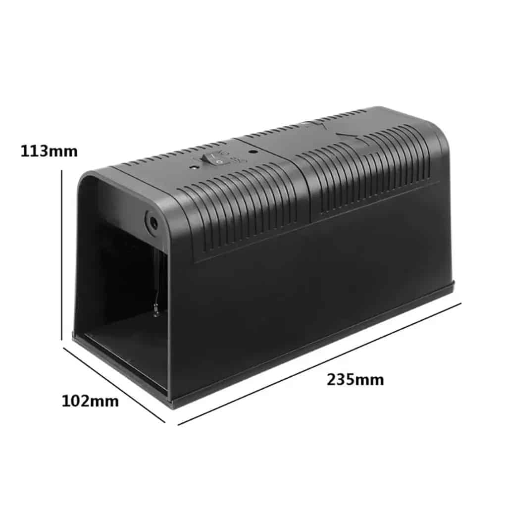 The trap effectively handles mice and small to medium rats. The powerful high-voltage system ensures reliable elimination regardless of rodent size within the trap's capacity.