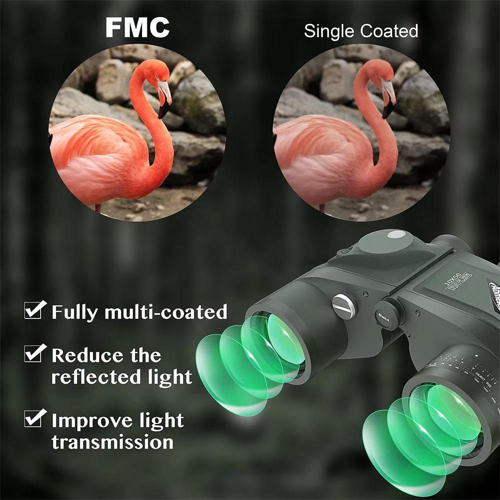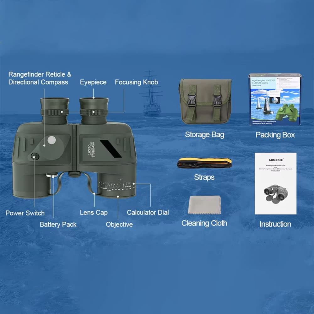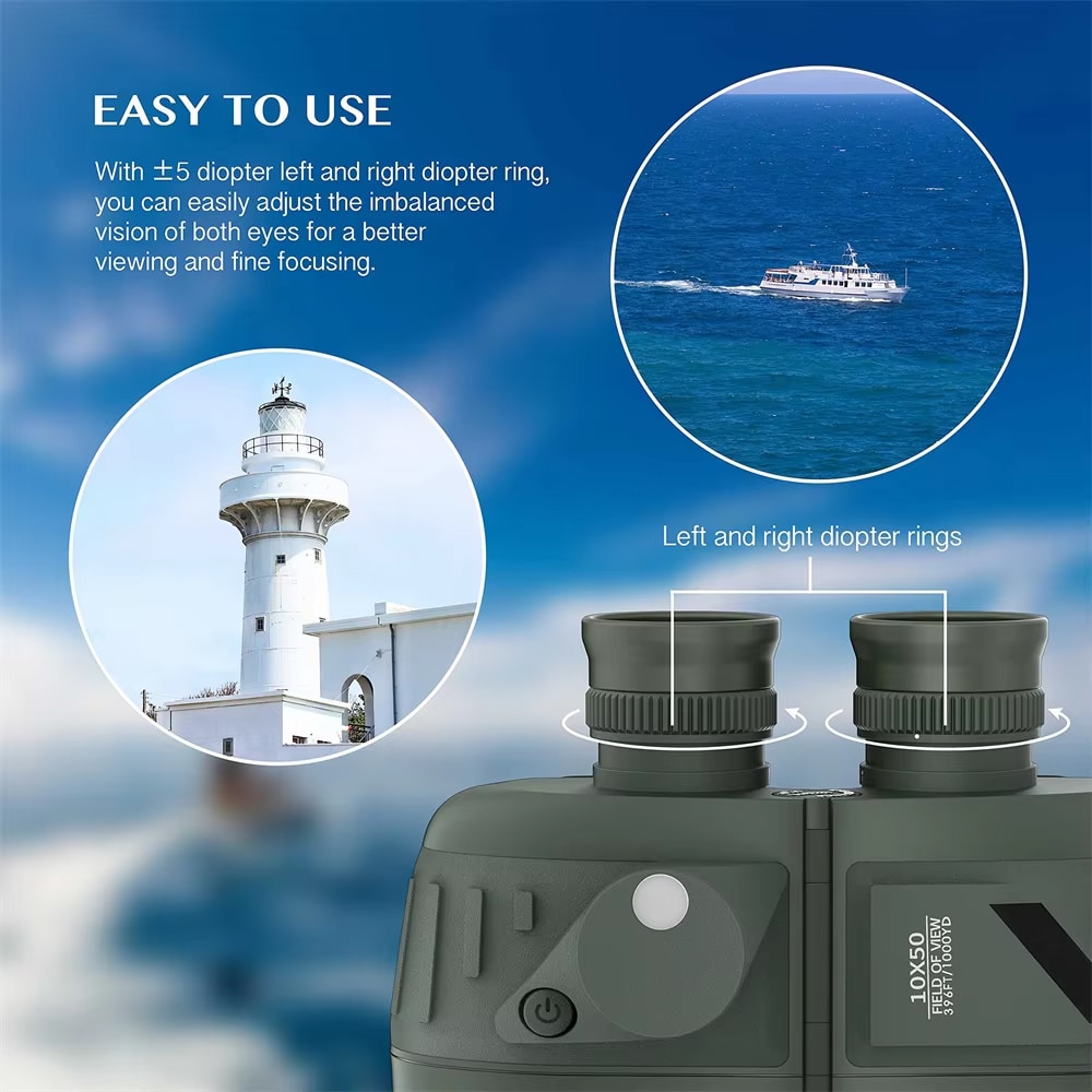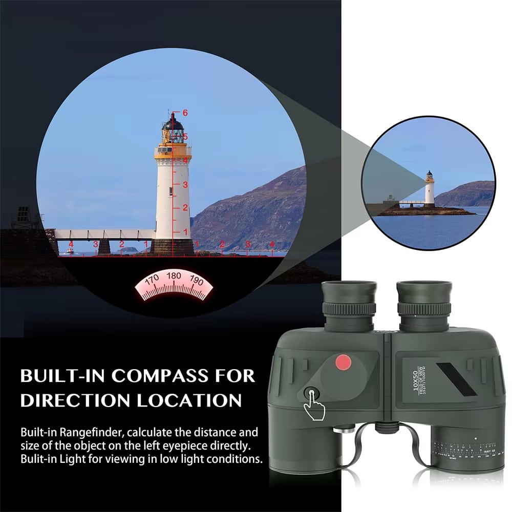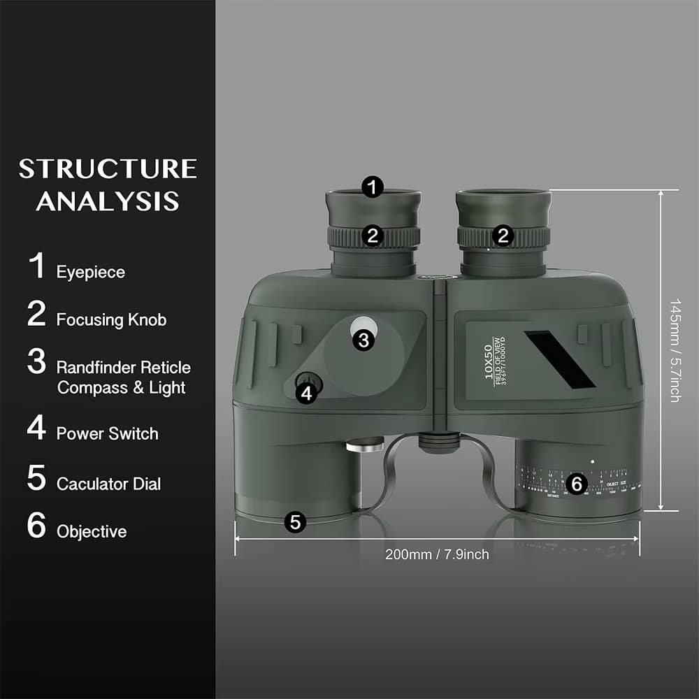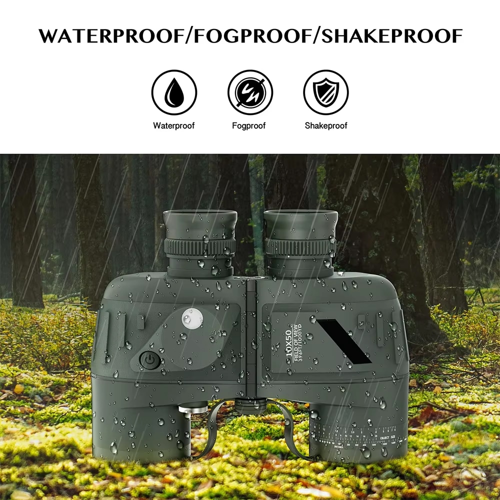 The military-grade rangefinder scale provides highly accurate distance measurements when used with standard military ranging techniques. Combined with the 10×50 magnification, you can reliably calculate target distances and sizes for navigation and tactical applications.