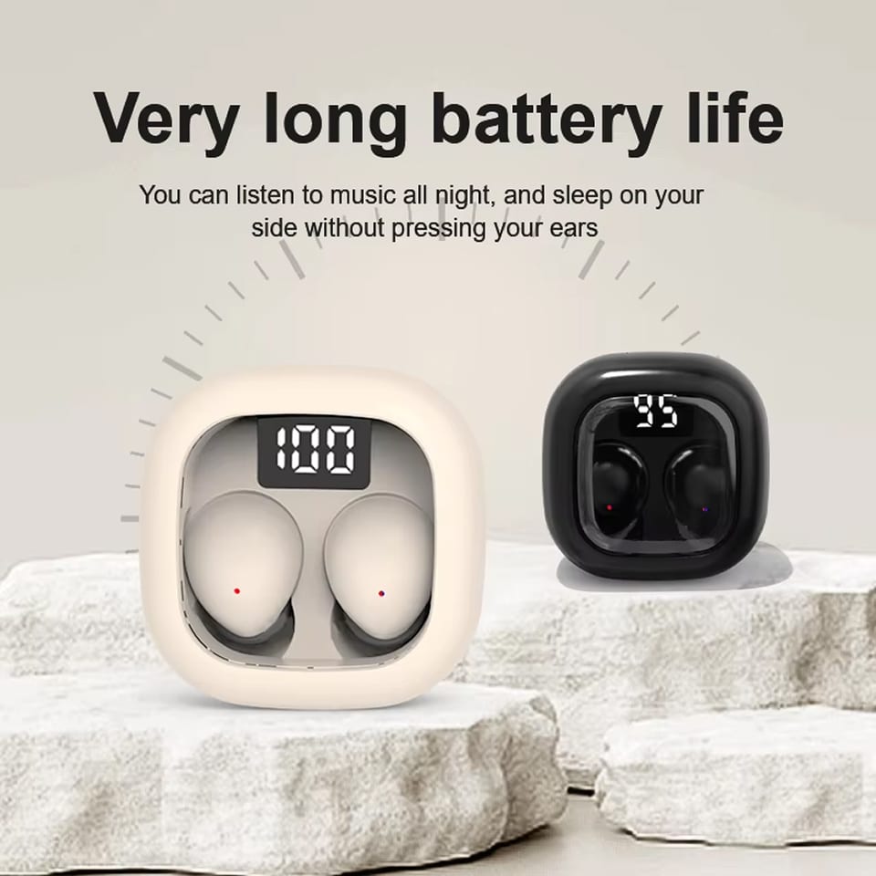 Each earbud provides approximately 5 hours of continuous playback on a single charge. The included charging case extends total playtime to 25 hours, ensuring multiple recharges before requiring mains power connection.