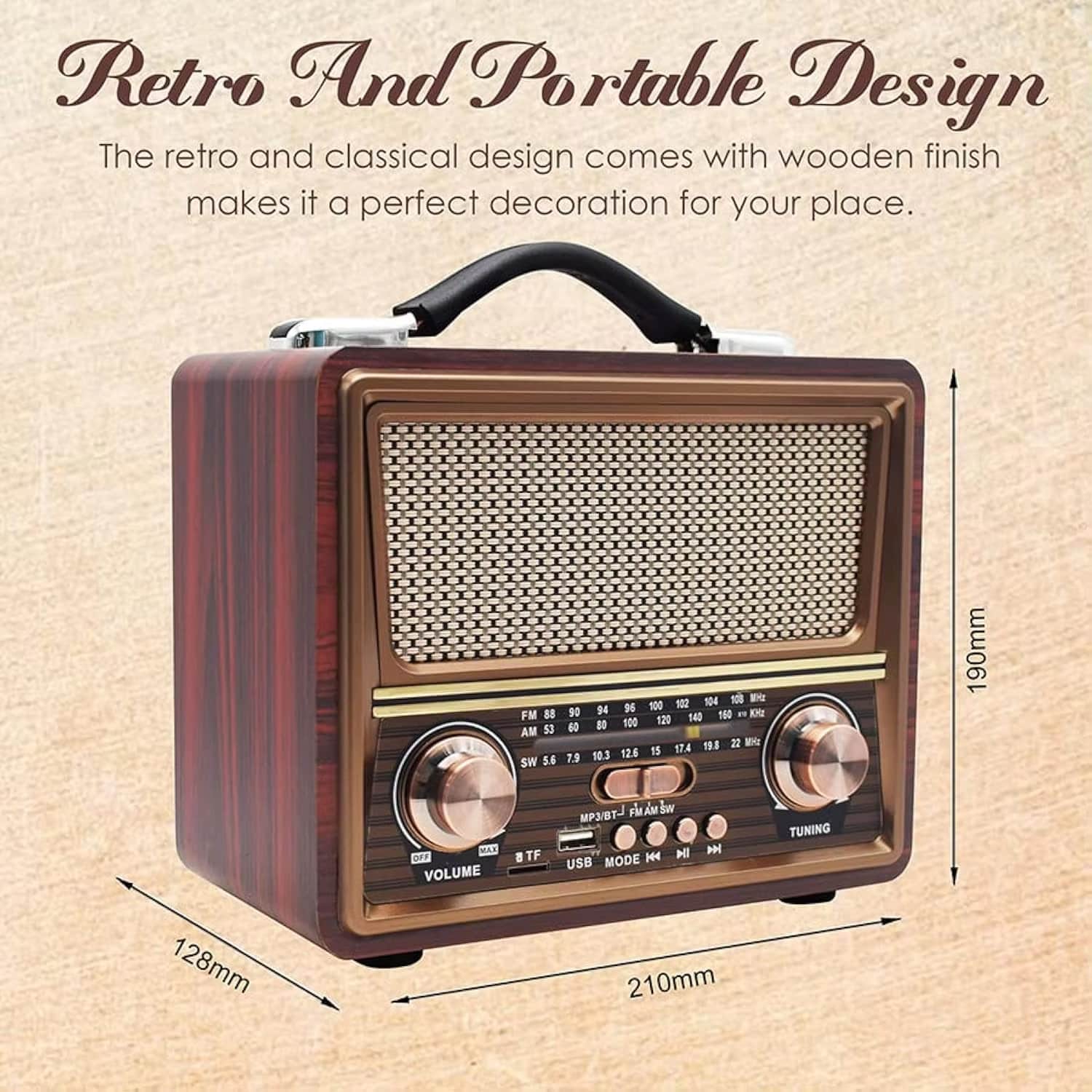 The NosHertz Retro Radio operates via AC power adapter (included). This eliminates battery replacement costs and ensures consistent performance during extended listening sessions without worrying about power depletion.