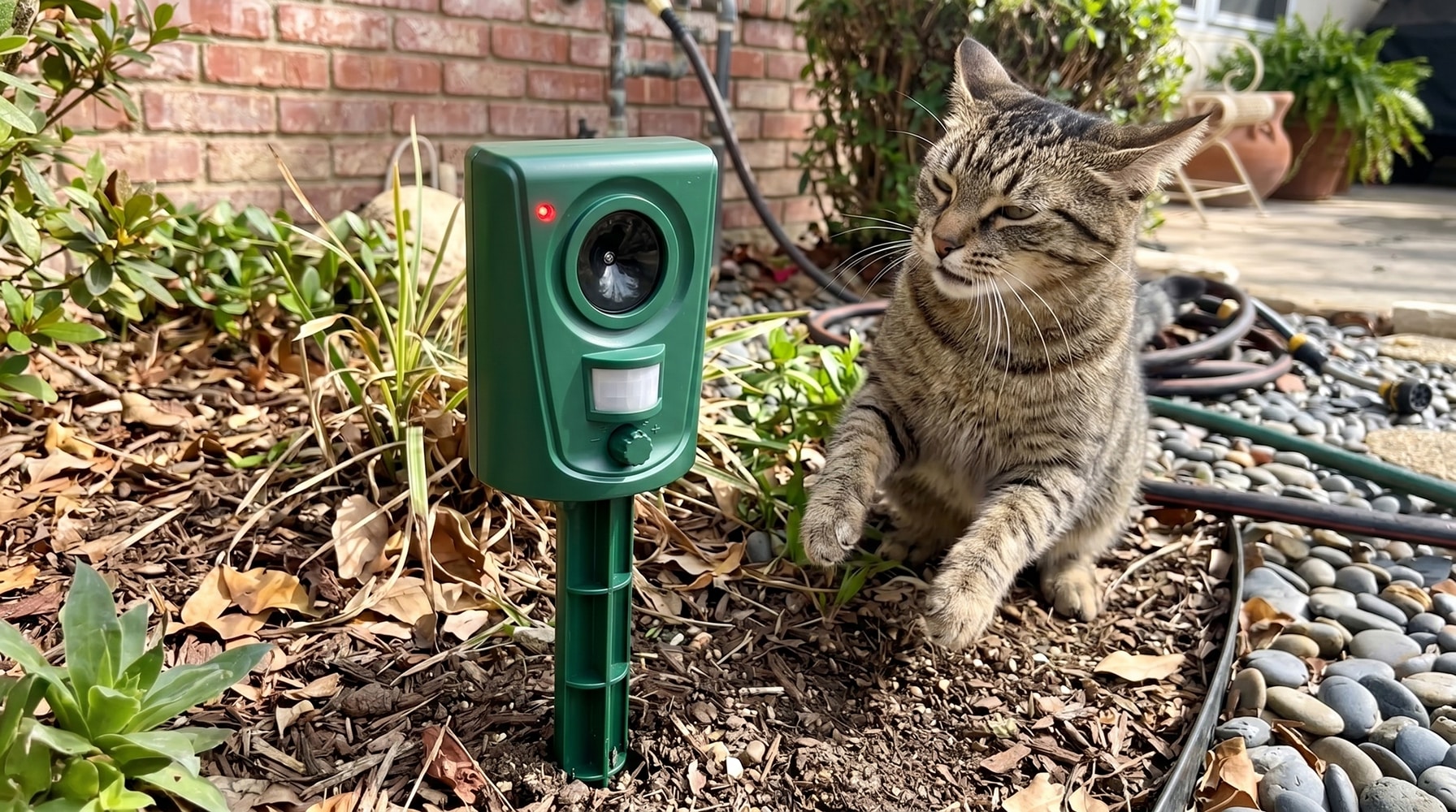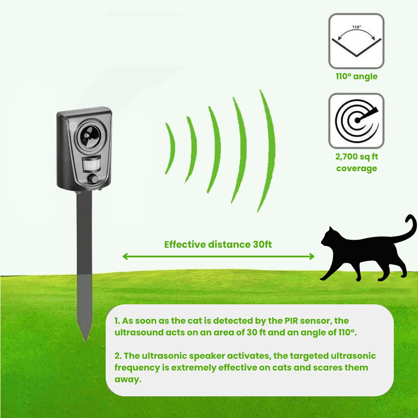 For best results, place it near entry points or specific areas cats frequent. Use the ground stake for lawns or the hook for garden fences.