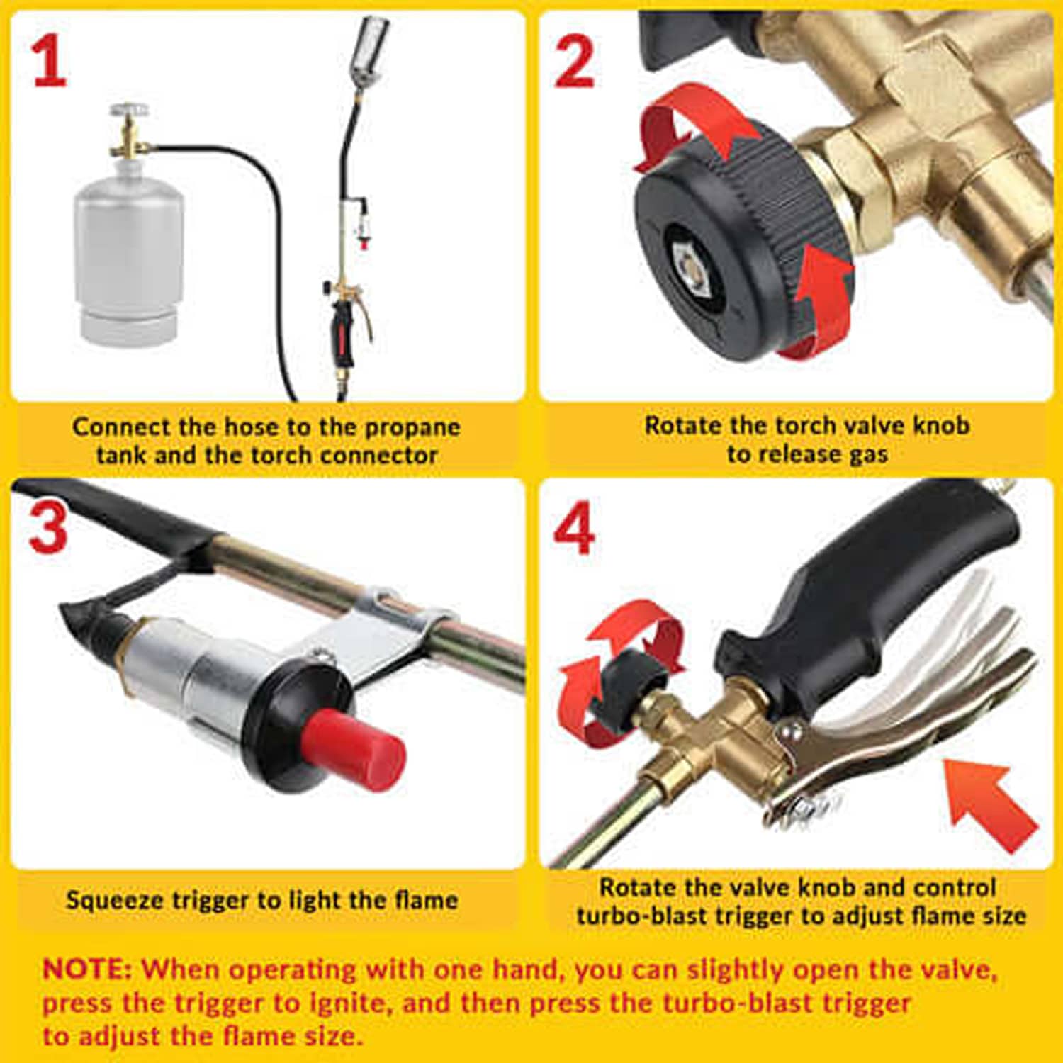 Say goodbye to tedious pulling and digging that strains your back. The PyroScorc is designed for effortless operation; its adjustable length allows you to work standing upright, and the one-handed trigger control means you can cover large areas quickly and comfortably, turning a chore into a quick task.