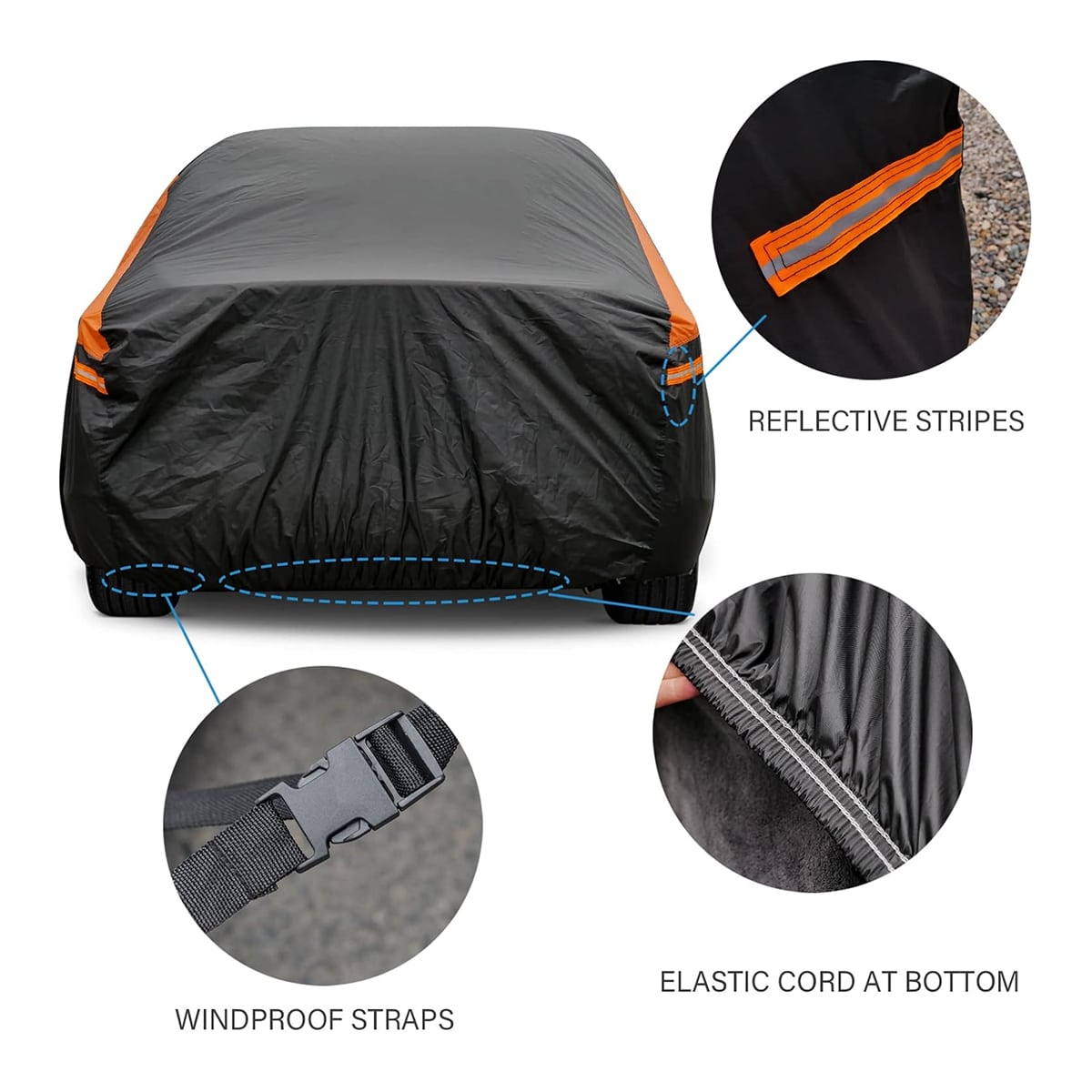 Four strategically positioned reflective strips ensure your covered vehicle remains visible during nighttime hours. This thoughtful safety feature helps prevent accidental collisions in dark car parks or driveways.