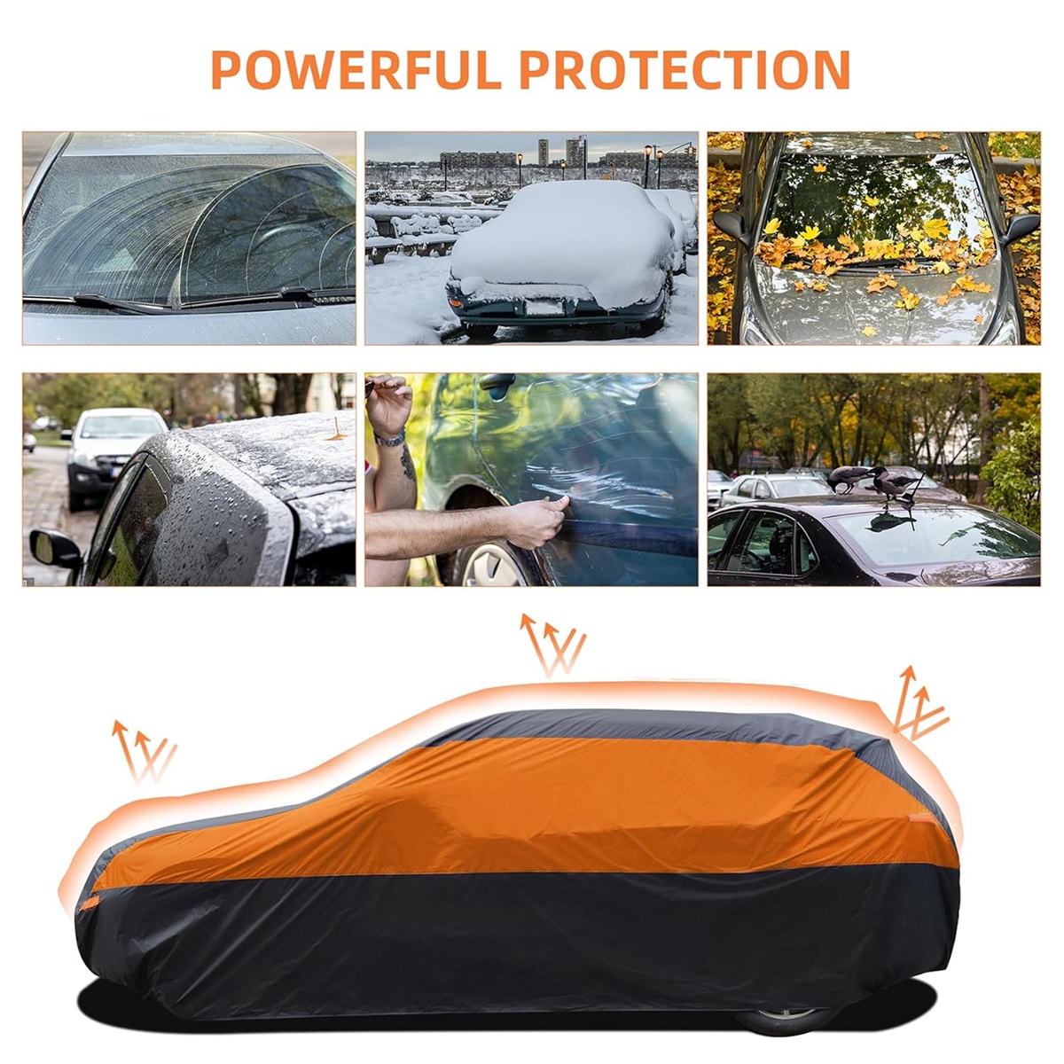 Protect your vehicle from dust, bird droppings, pollen, fallen leaves, and industrial pollution with the SnoDefin Snow Car Cover. The all-weather design creates a reliable barrier against environmental contaminants, keeping your car pristine without constant washing.