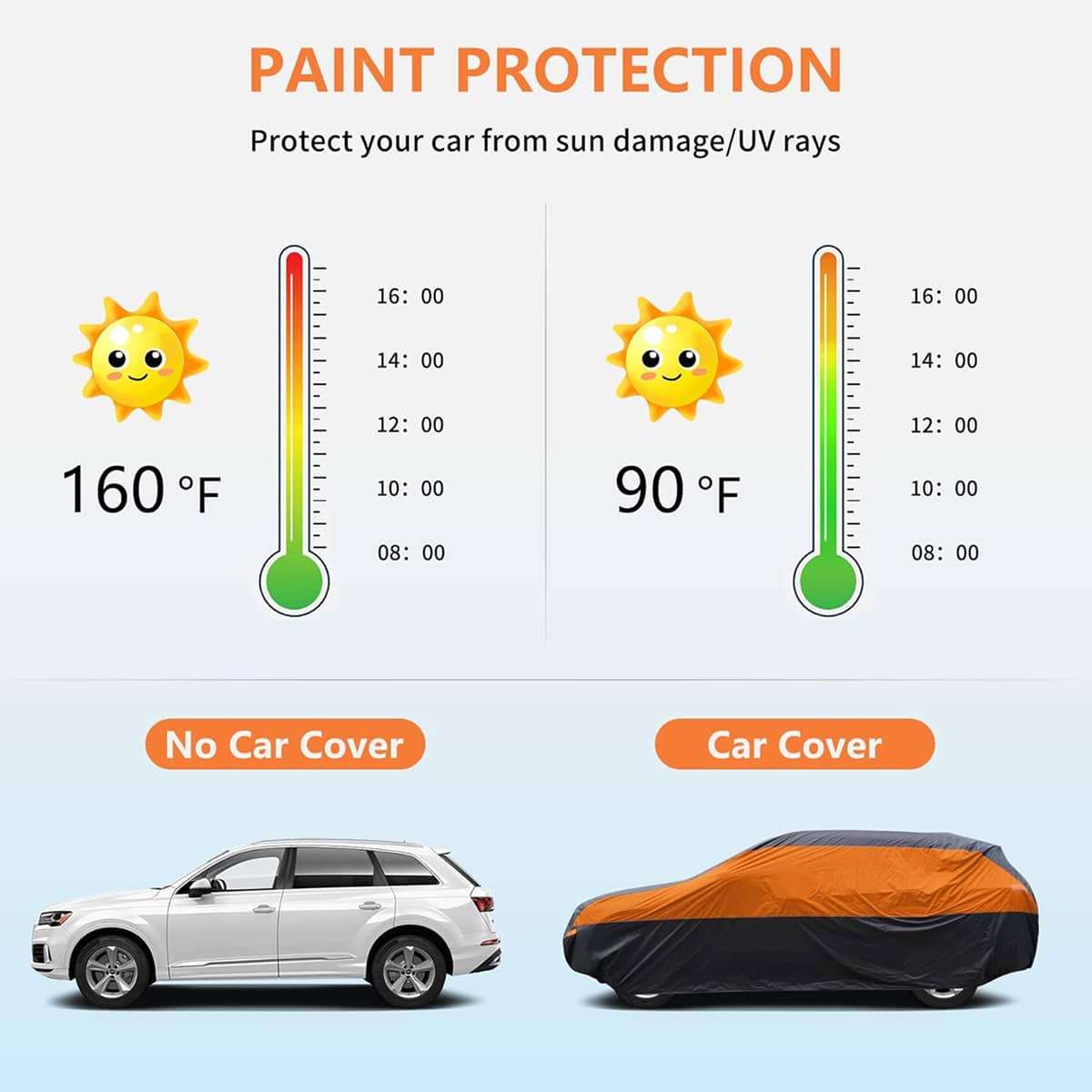 The SnoDefin Snow Car Cover withstands 1800mm water pressure whilst blocking harmful UV rays with advanced PA coating. Its wear-resistant, tear-resistant fabric ensures your vehicle stays protected from snow, rain, and extreme temperatures throughout every season.