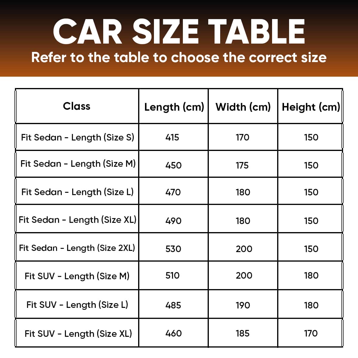 • Fits sedans up to 174 inches