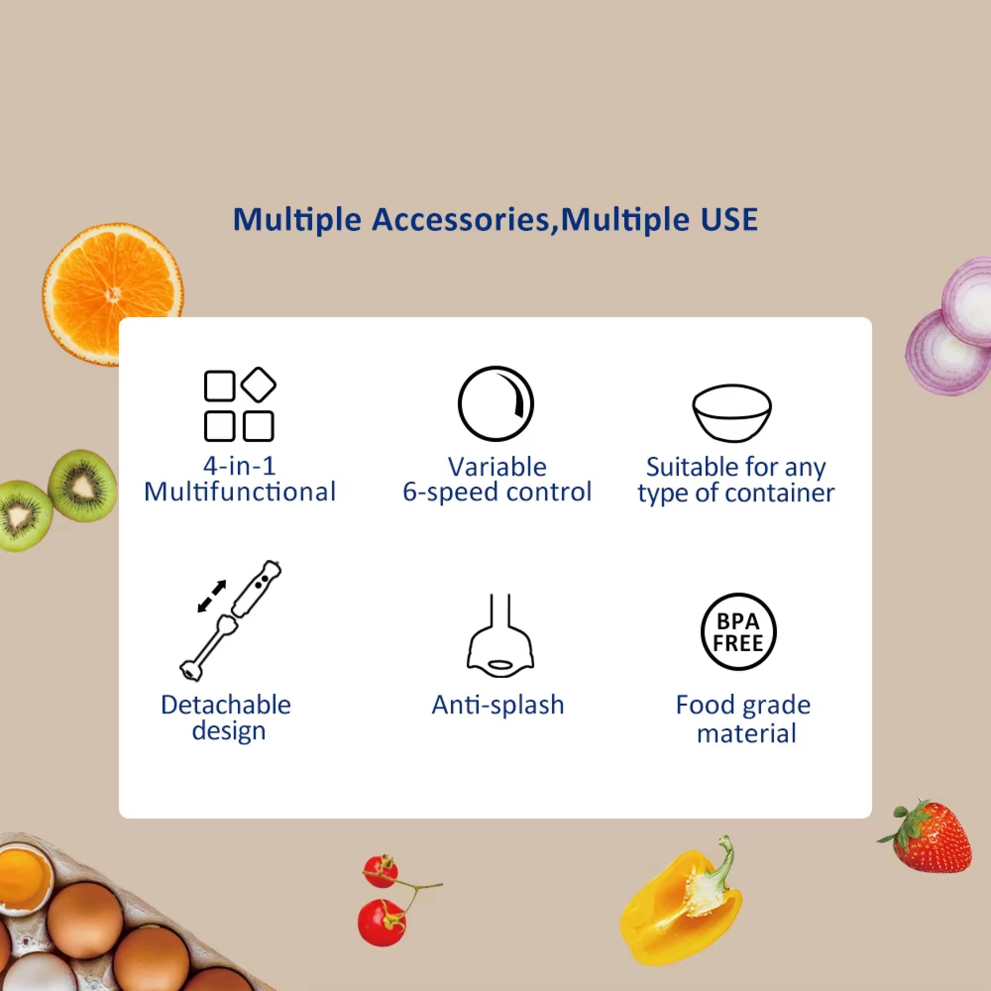 Simply turn the speed dial to select from six settings. Lower speeds work for gentle mixing, while higher speeds provide powerful blending for tougher ingredients.