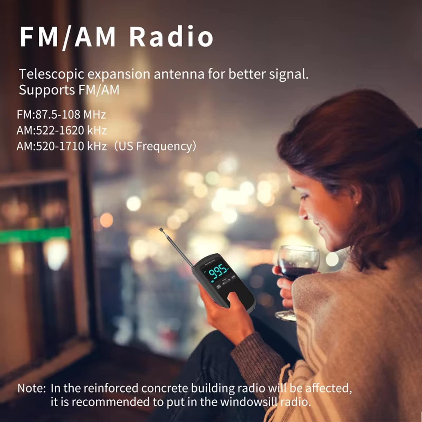 For the best FM reception, extending the telescopic antenna is recommended. For AM stations, the internal ferrite bar antenna usually provides excellent signal strength automatically.
