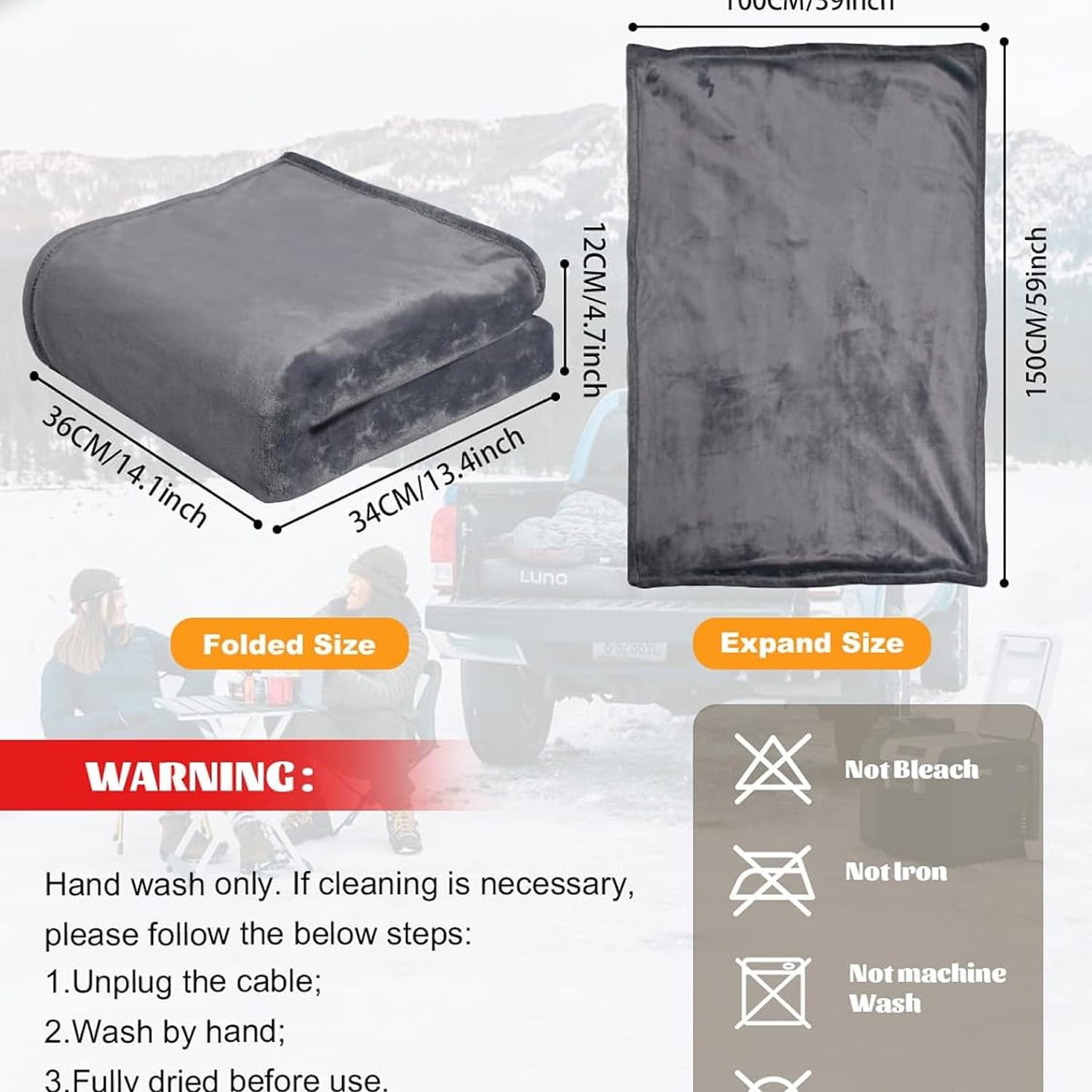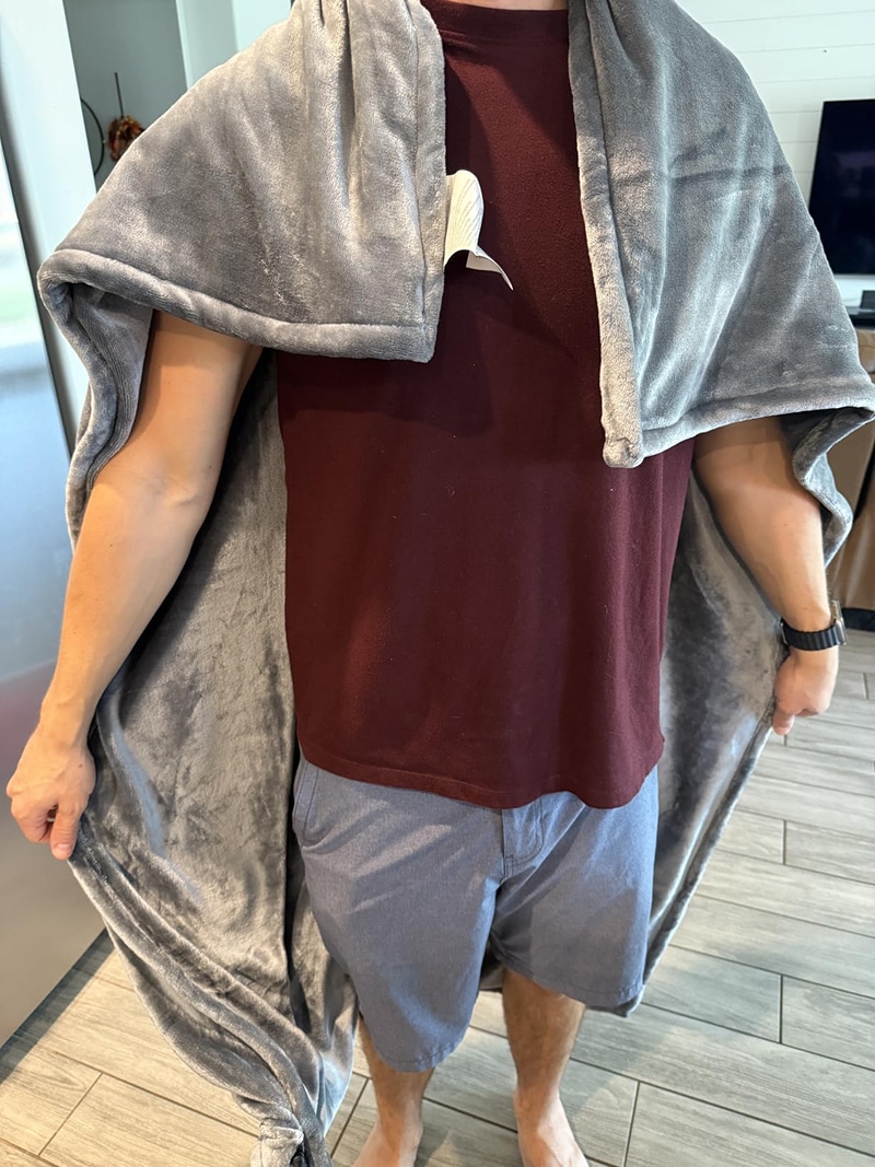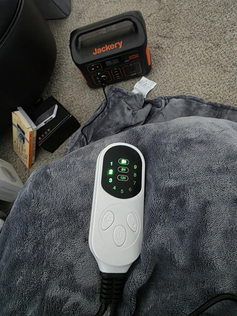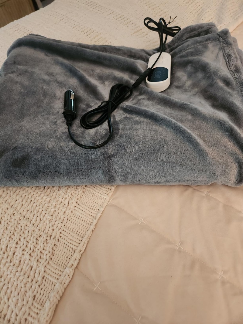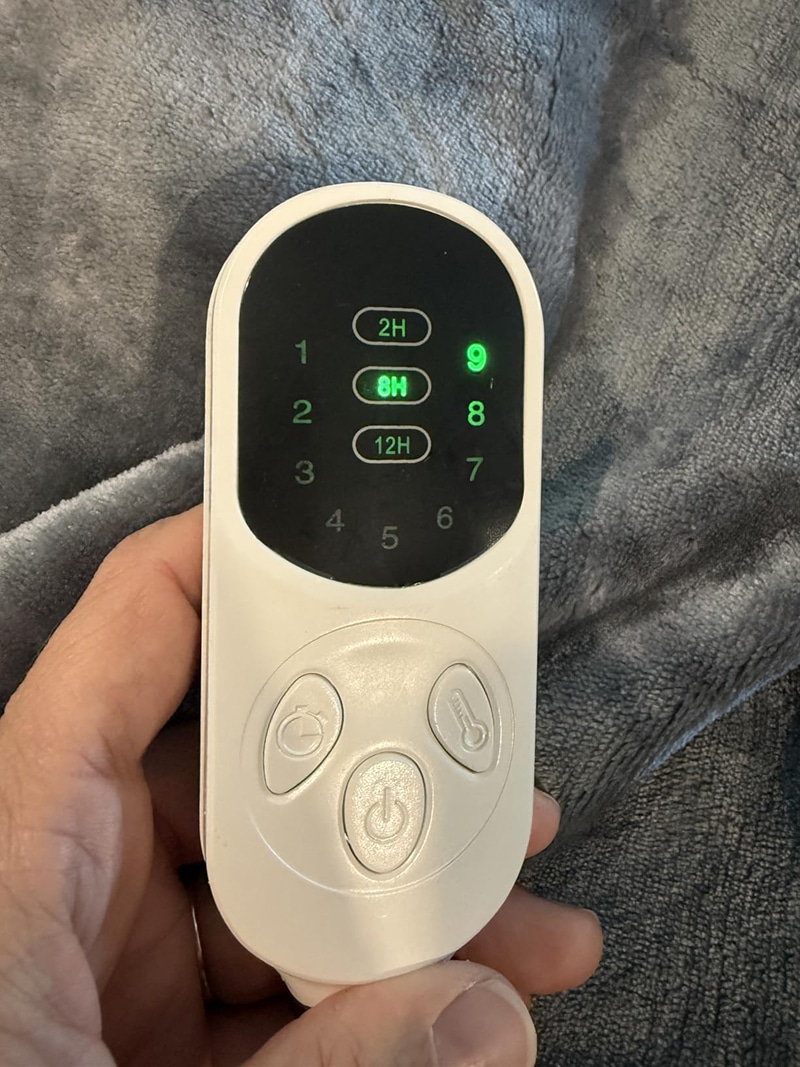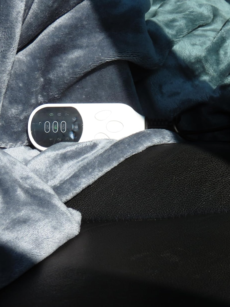 The blanket features a removable controller and is machine washable on gentle cycle for easy maintenance and hygiene.