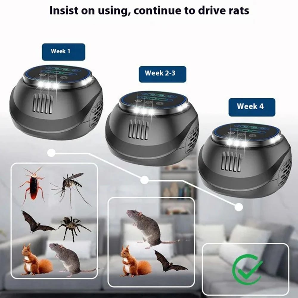 Highly effective against mice, rats, cockroaches, and most common household pests through targeted frequency ranges and LED enhancement.