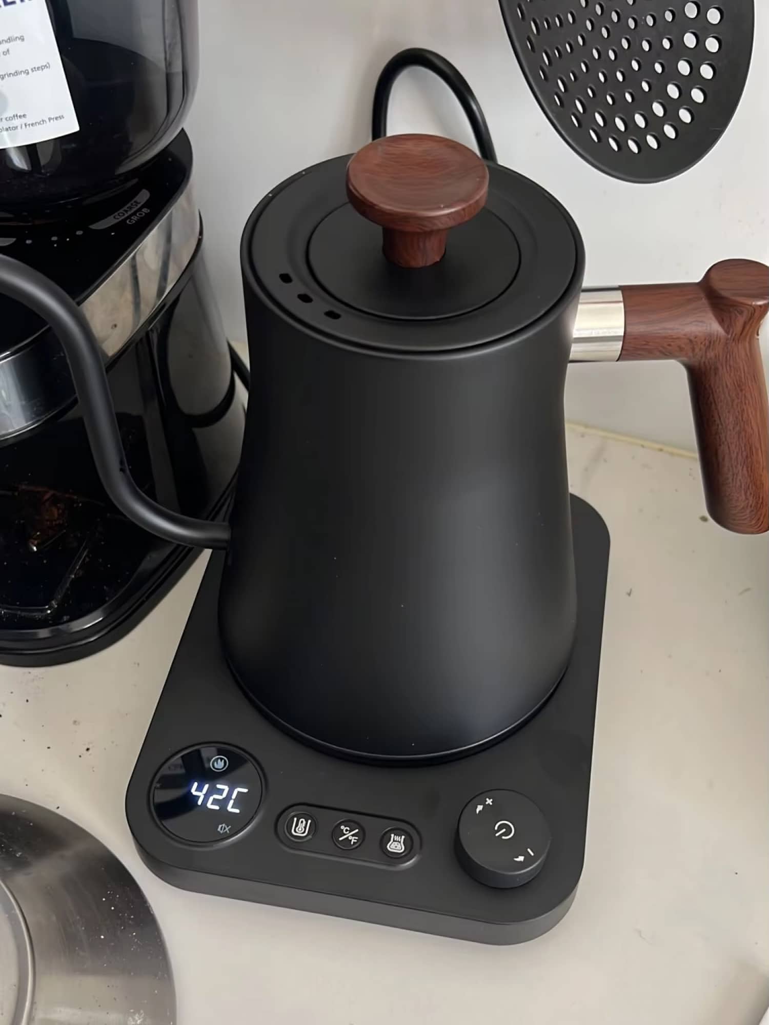 Absolutely! The wide temperature range accommodates delicate white teas (70°C), green teas (80°C), oolong (90°C), black tea (95°C), and pour-over coffee (92-96°C) with perfect precision.